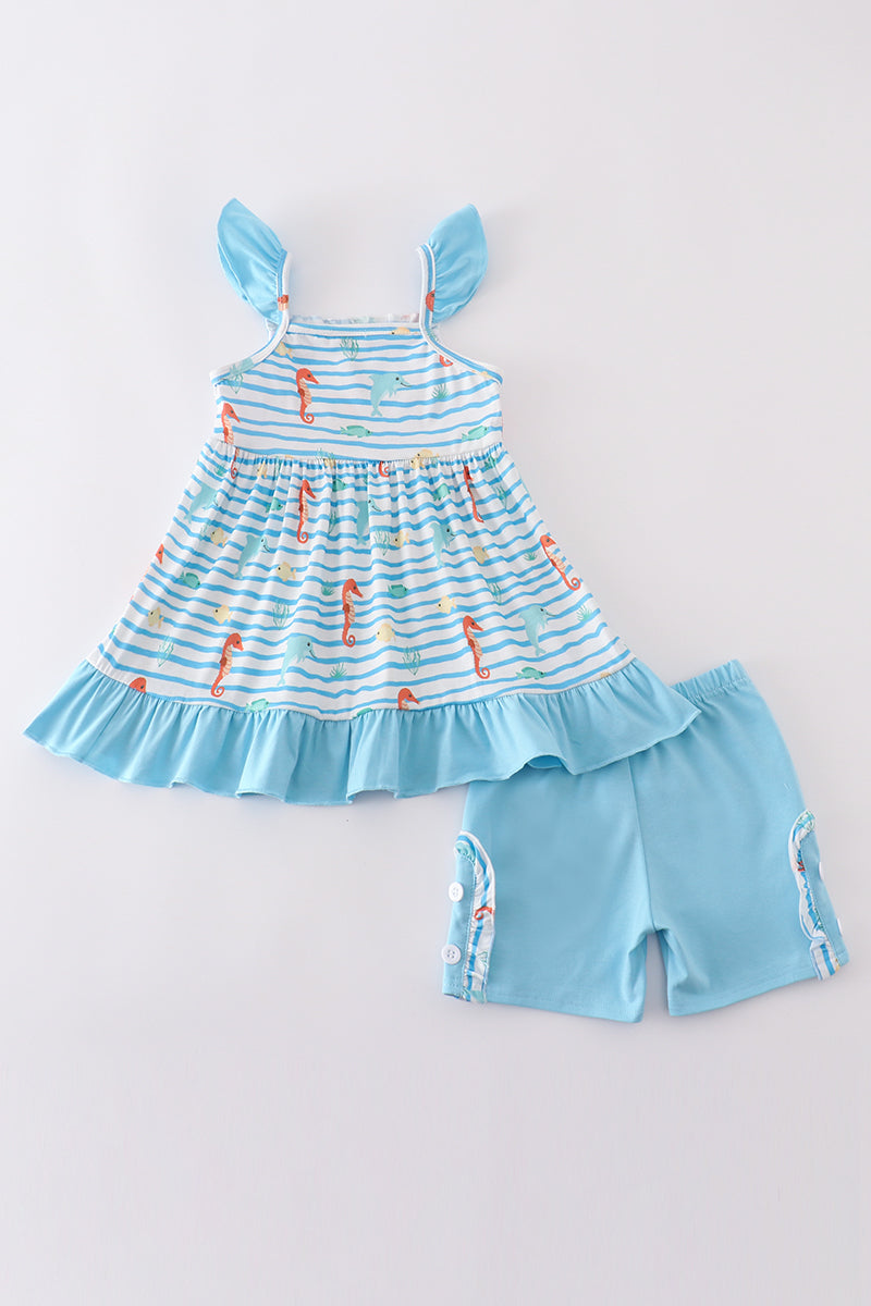 Blue marine creature embroidery set