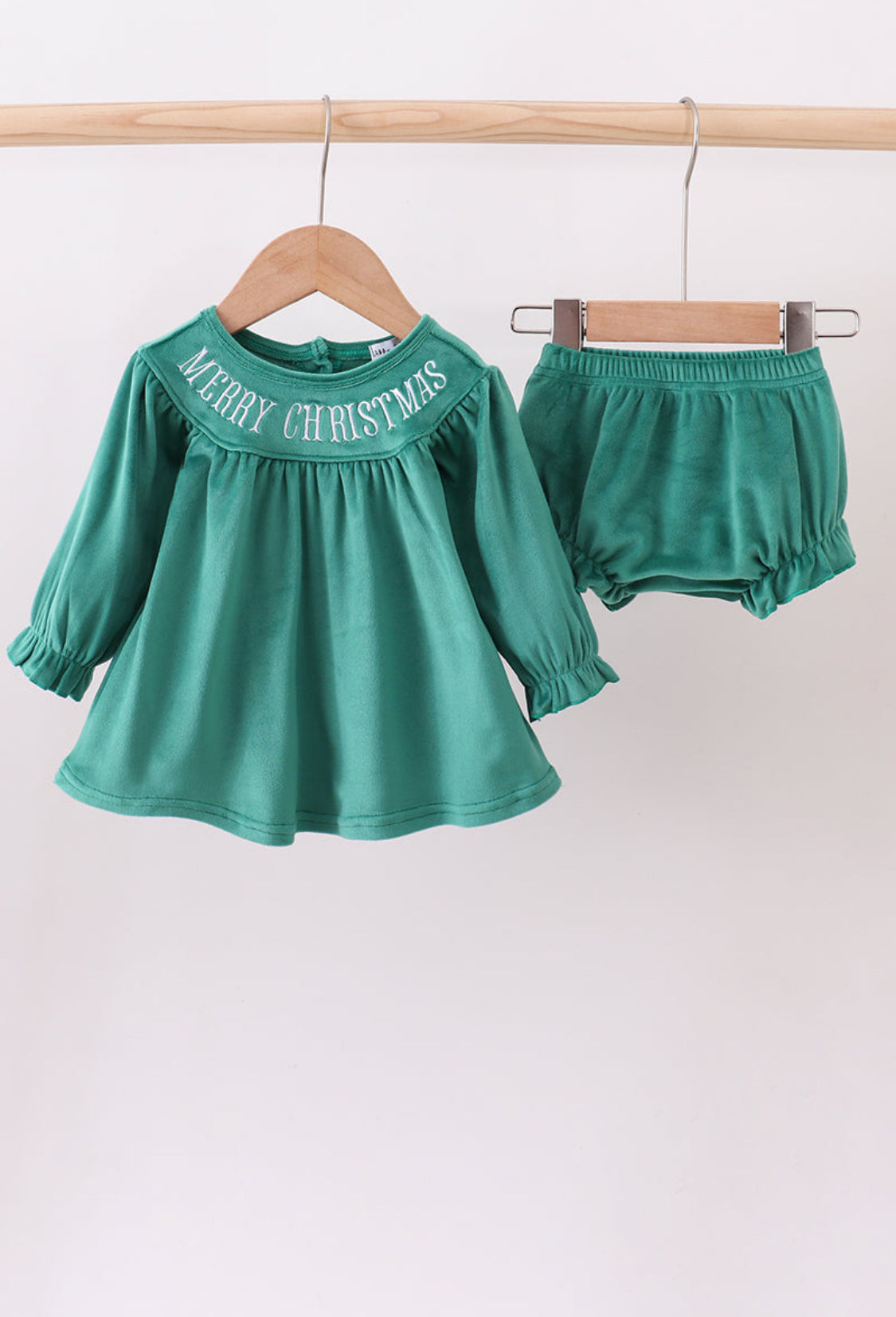 Forest Merry Christmas Embroidery Girl’s Bloomer Set