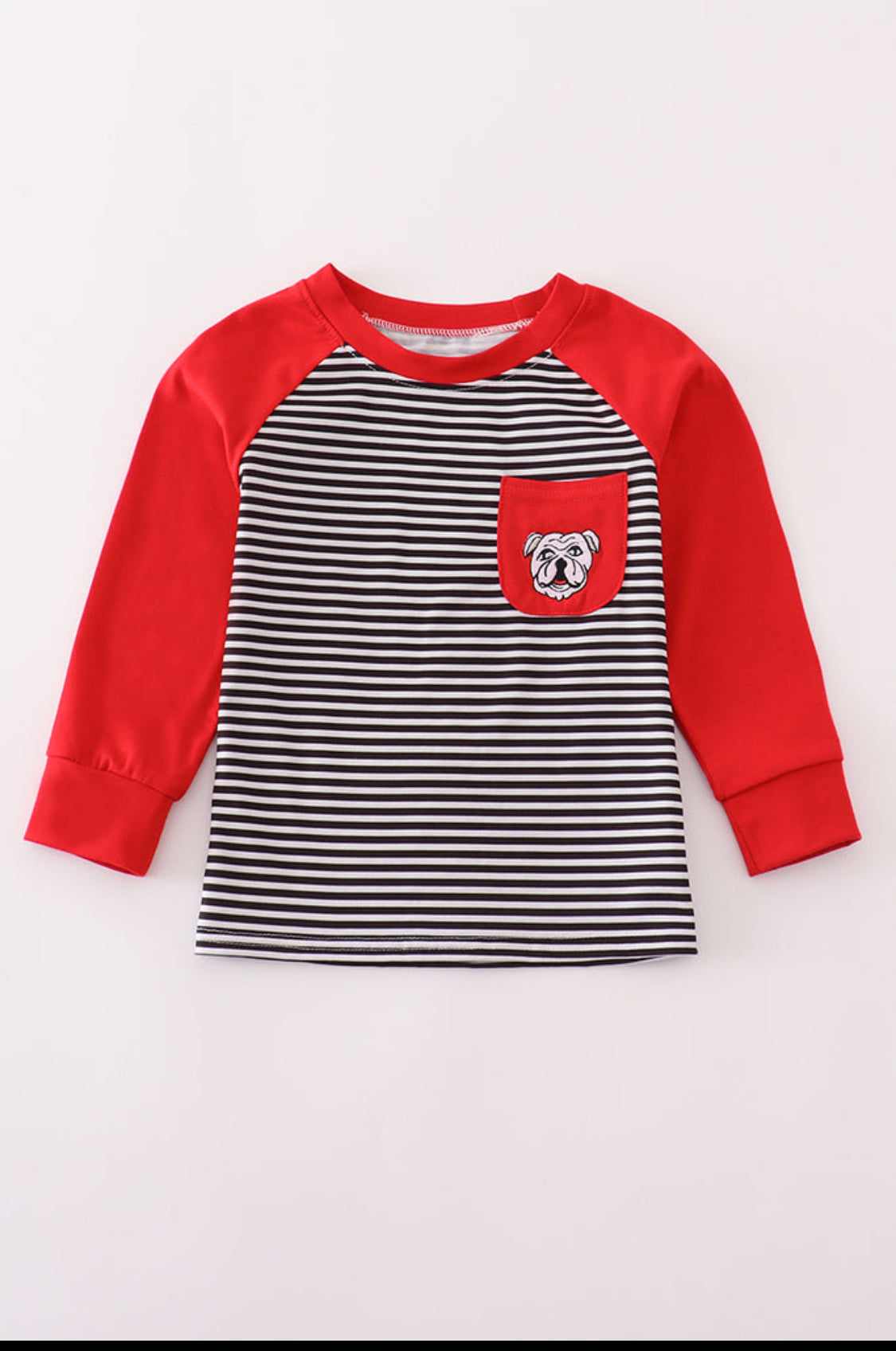 Show your team spirit with this playful Georgia Bulldog embroidery stripe top.