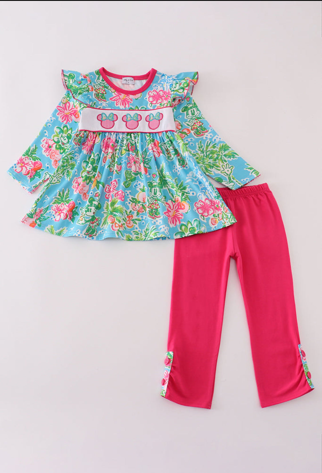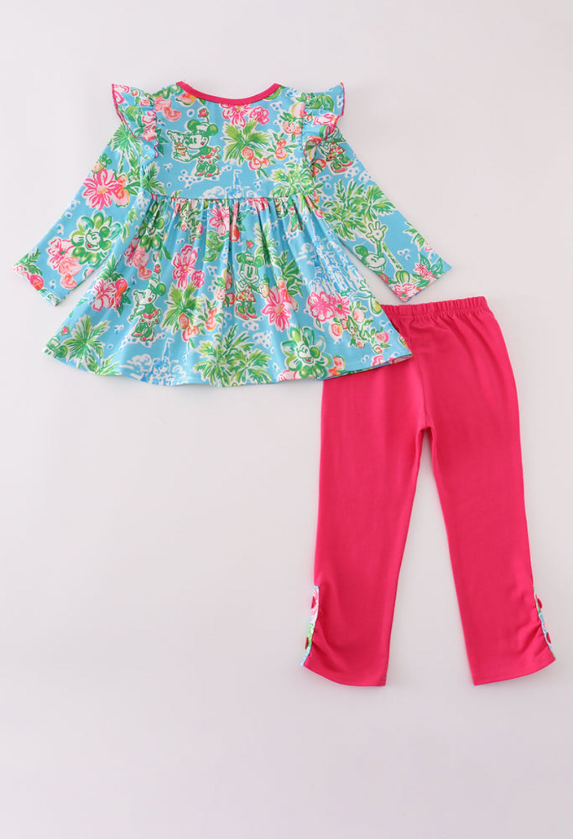 Add a splash of fun to your wardrobe with this green floral character applique pants set. Featuring charming floral designs and playful character details, this set brings a lively, cheerful vibe to your everyday look. Perfect for those who love a touch of whimsy and comfort combined in one stylish outfit.