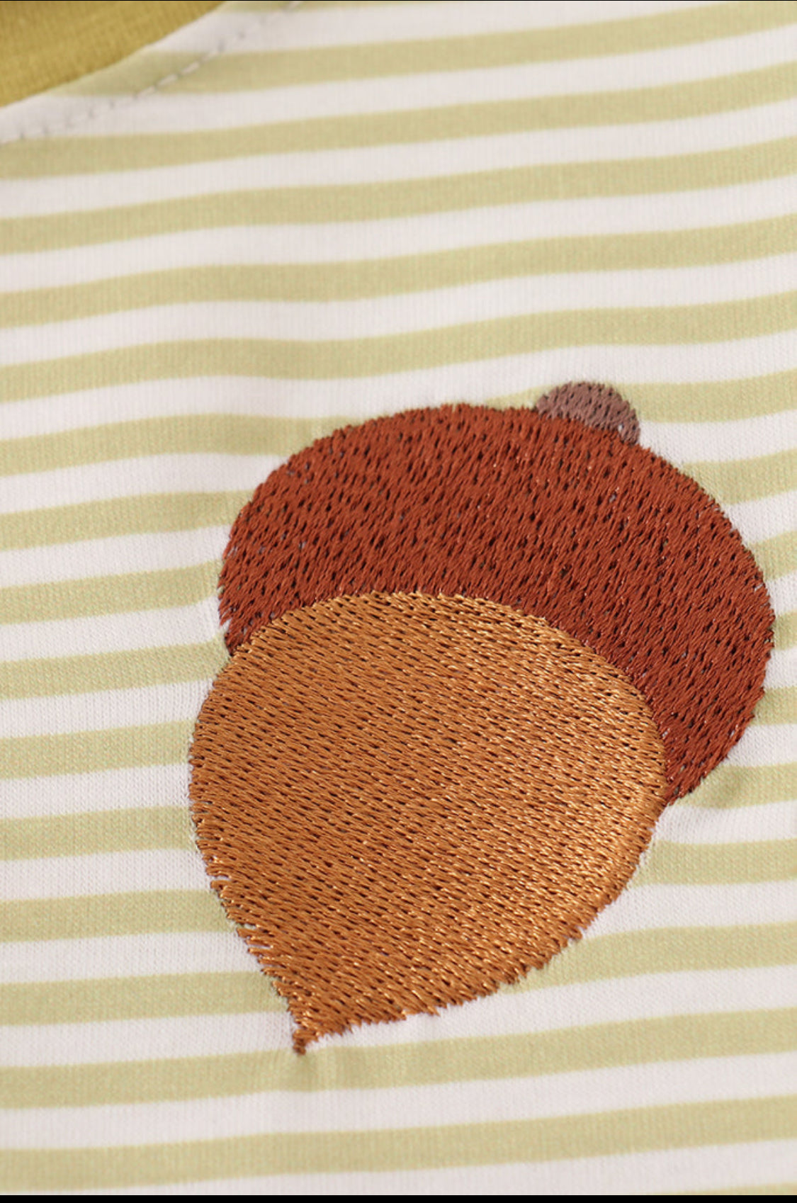 Add a touch of whimsy to your wardrobe with this green pinecone embroidery stripe top. The charming pinecone details bring nature-inspired fun, while the classic stripes keep it fresh and stylish. Perfect for playful days out or cozy weekends in!