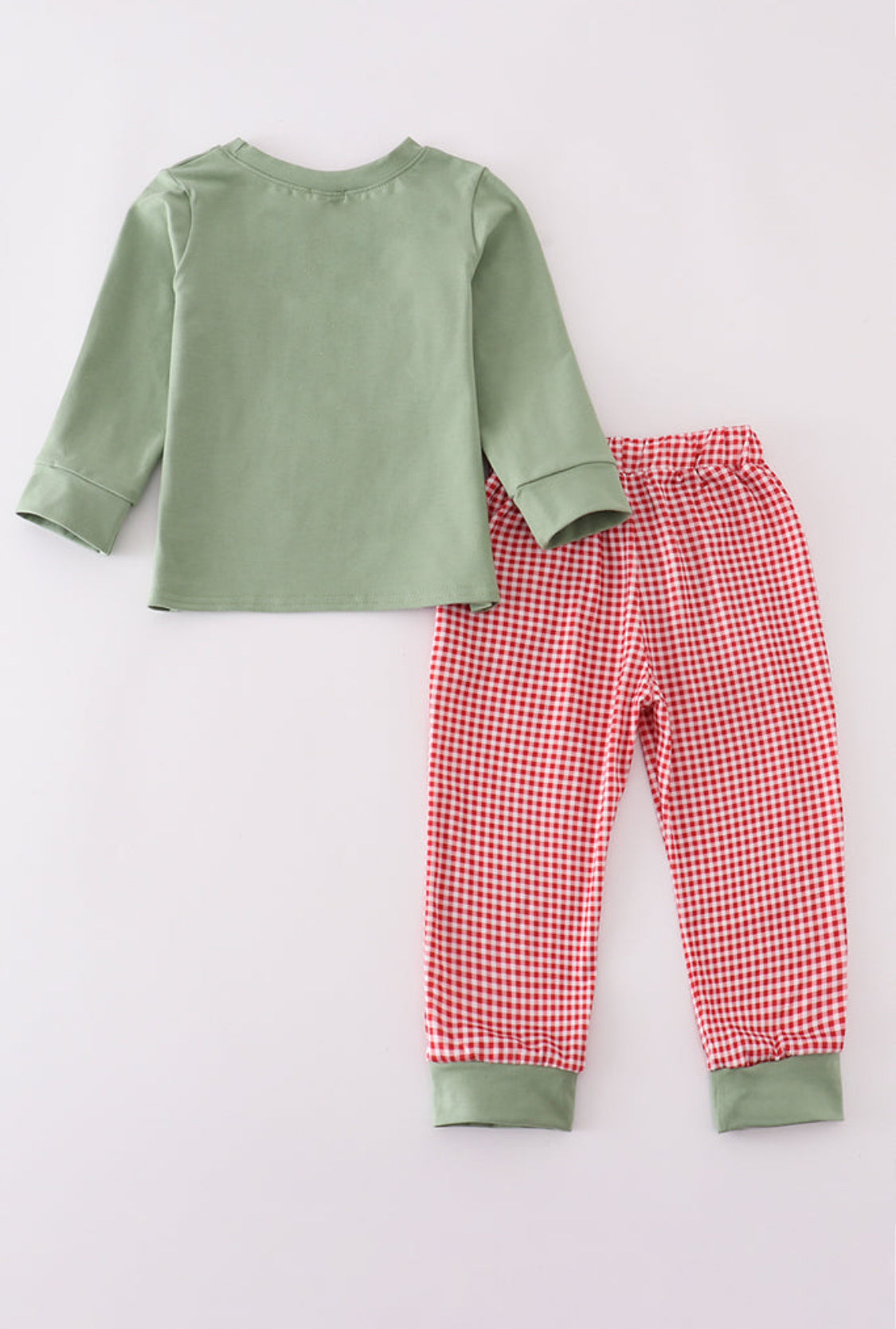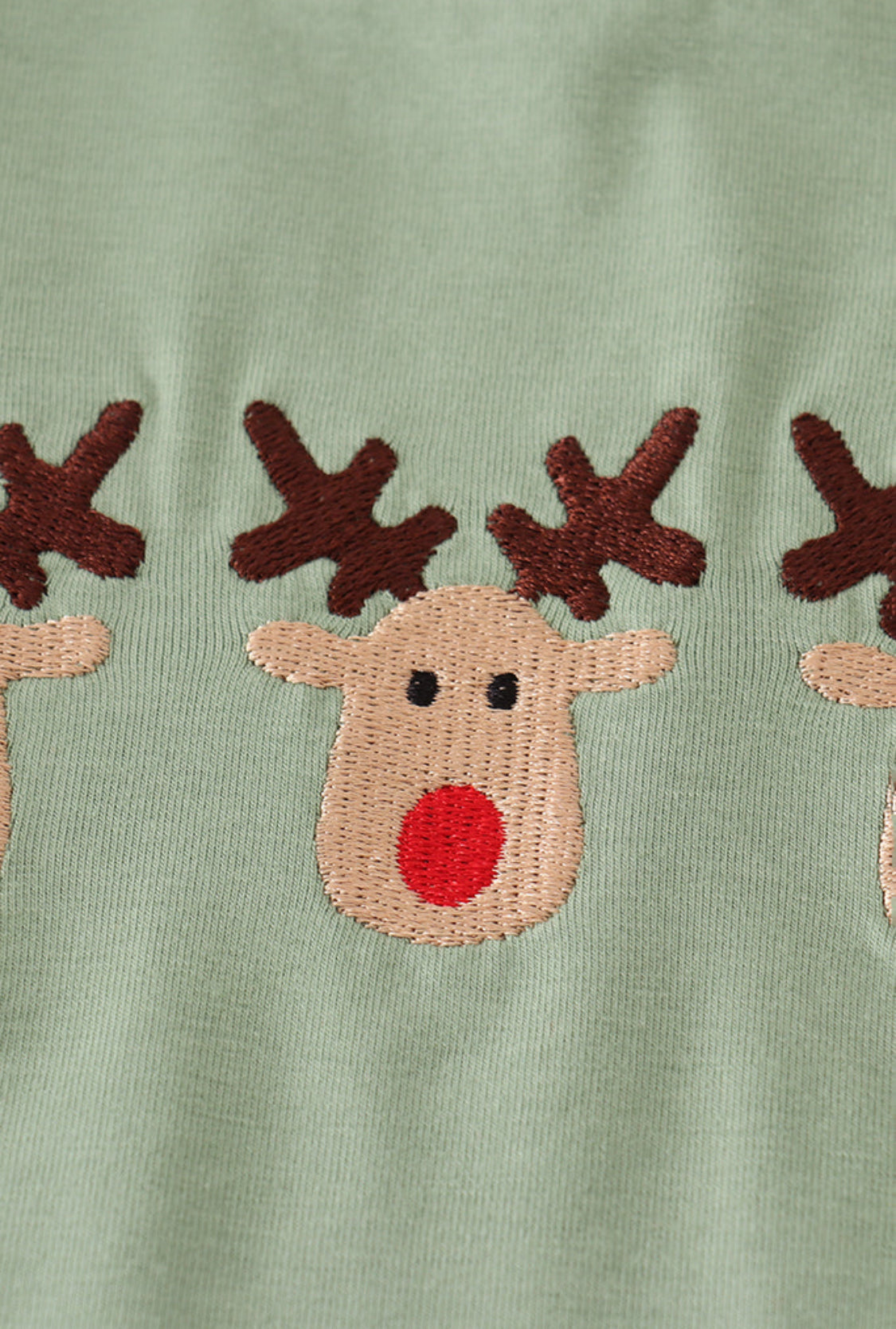 Get cozy and festive with this Green Reindeer Embroidery Pants Set!