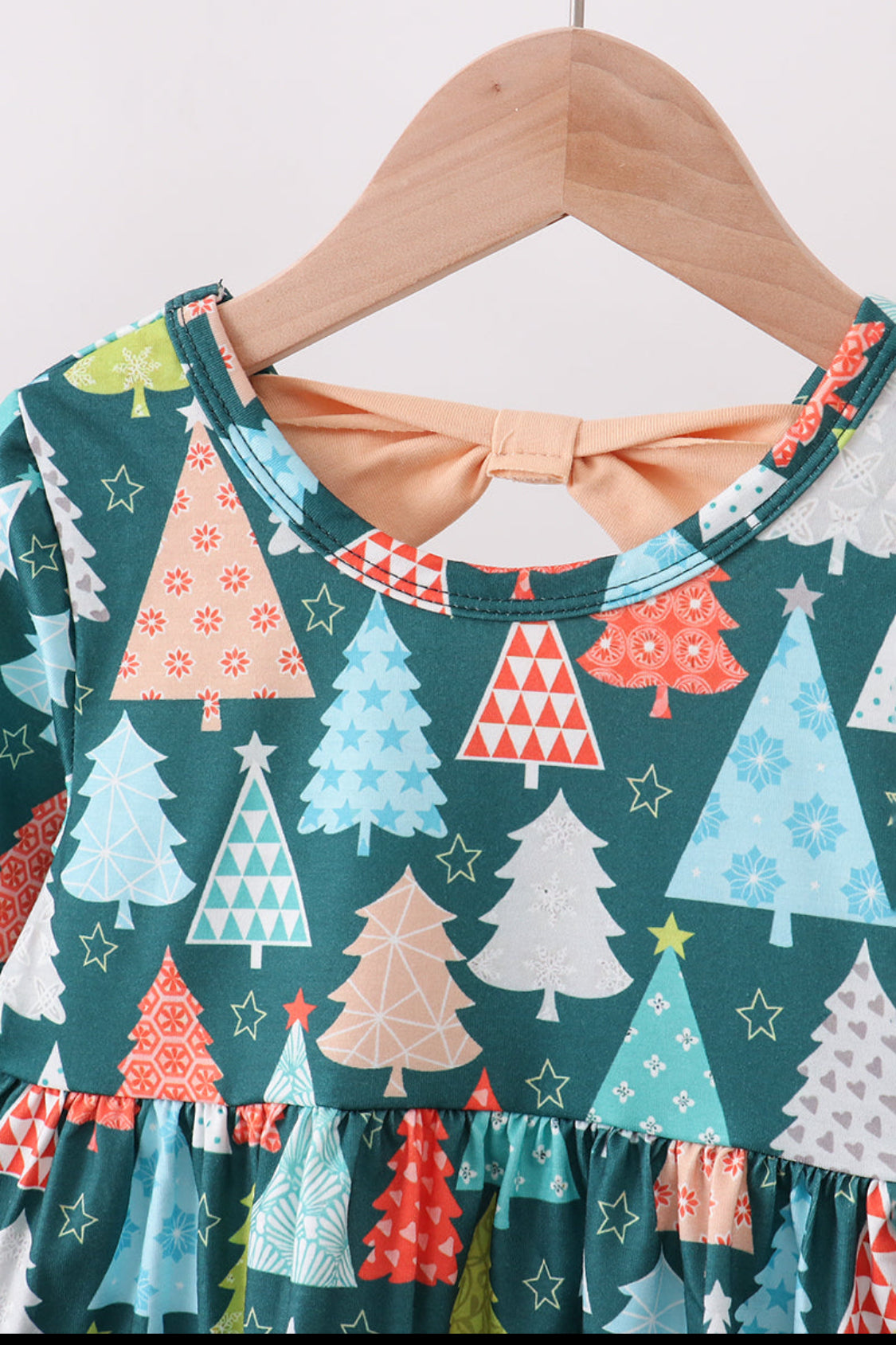 Featuring a lively tree pattern and fun ruffle details, it brings a fresh and whimsical vibe to any casual day. Soft, breathable fabric allows easy movement, making it perfect for relaxed days or playful outings.