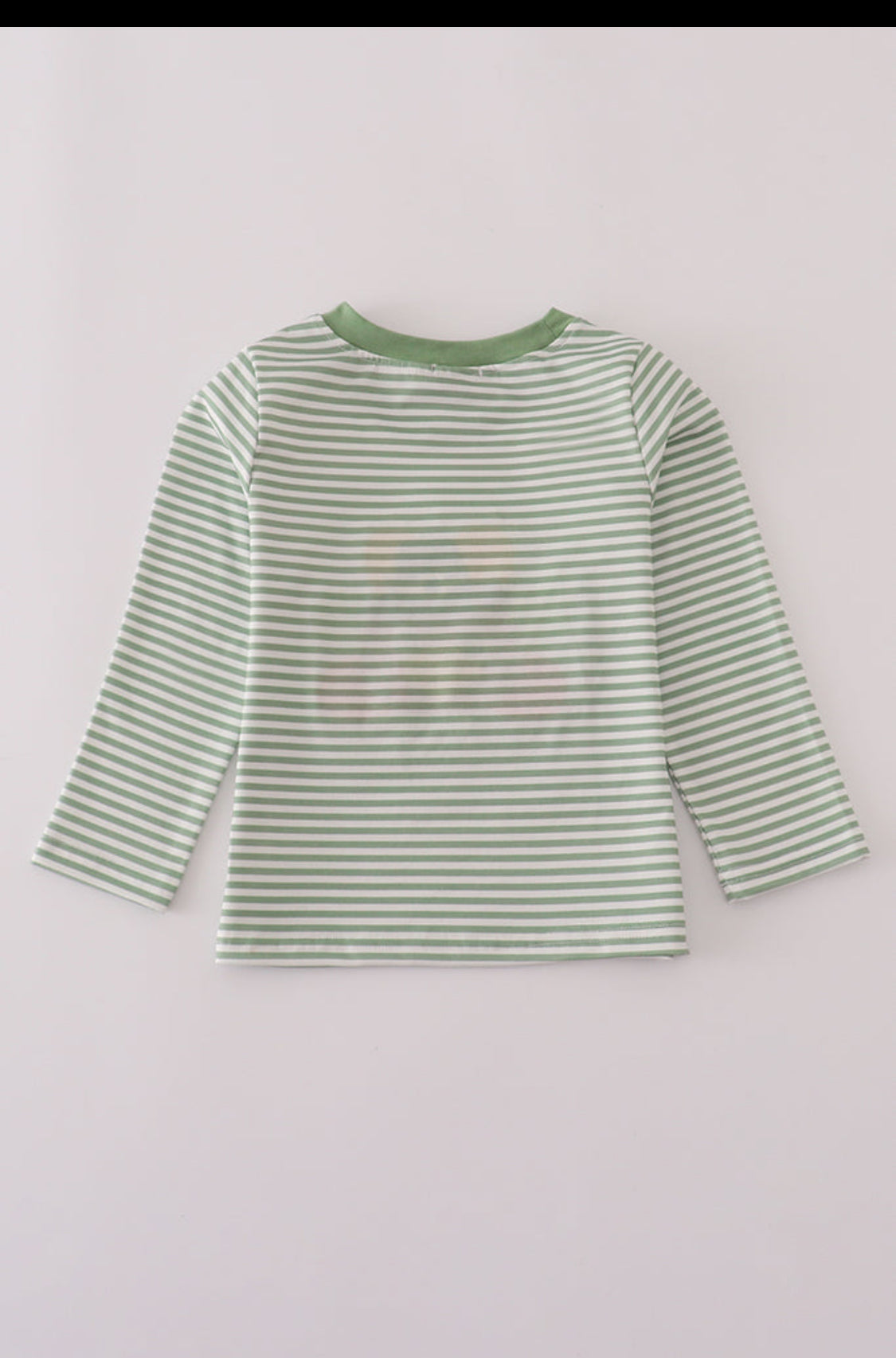 Stripe Top. Featuring charming stripes and a playful French knot detail, it's perfect for brightening up any day. Soft and comfortable, this top pairs effortlessly with your favorite jeans or skirts for a look that's both cute and casual.