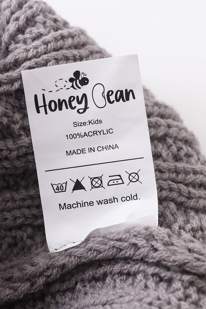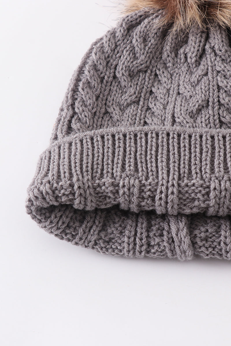 Grey cable knit pom pom beanie hat baby toddler adult