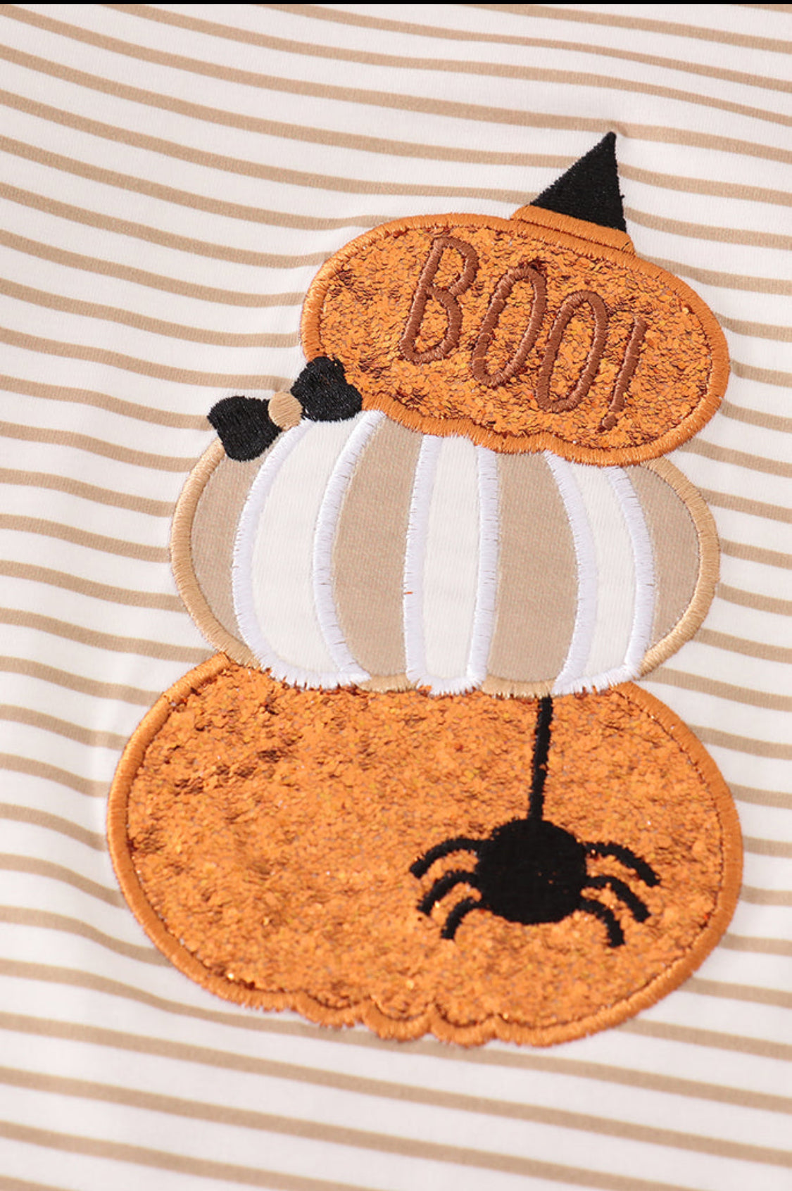 Khaki Stripe Pumpkin Glitter Girl’s Pants Set