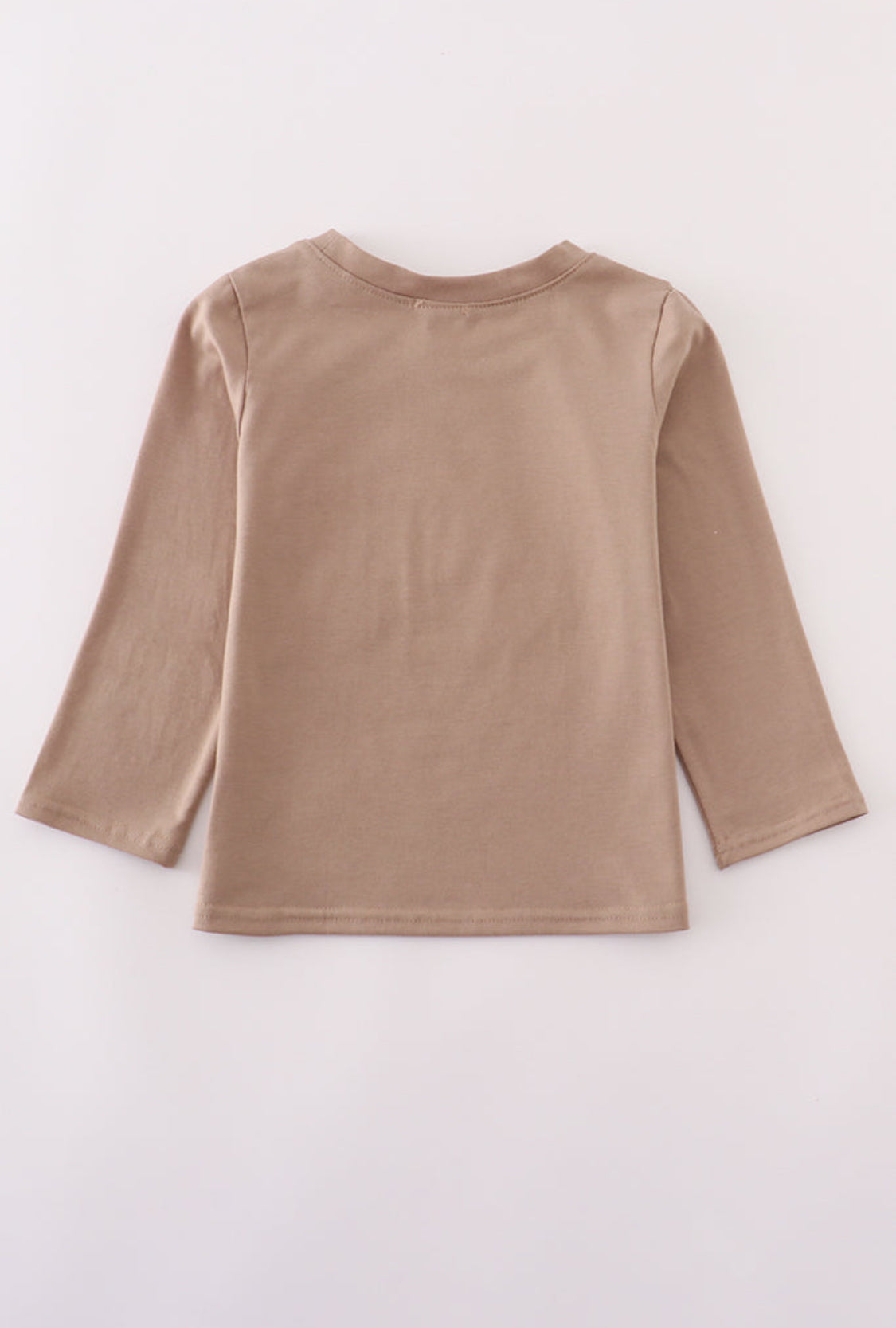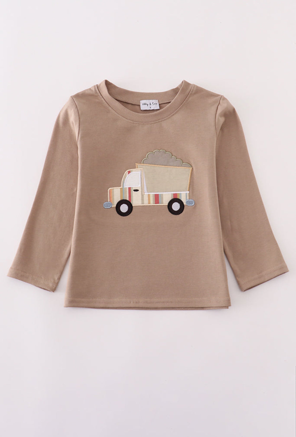 This khaki top features a fun vehicle applique that adds a playful touch to your outfit. Perfect for casual days, it combines comfort with a quirky design that sparks joy and adventure. Easy to pair and sure to brighten your wardrobe!