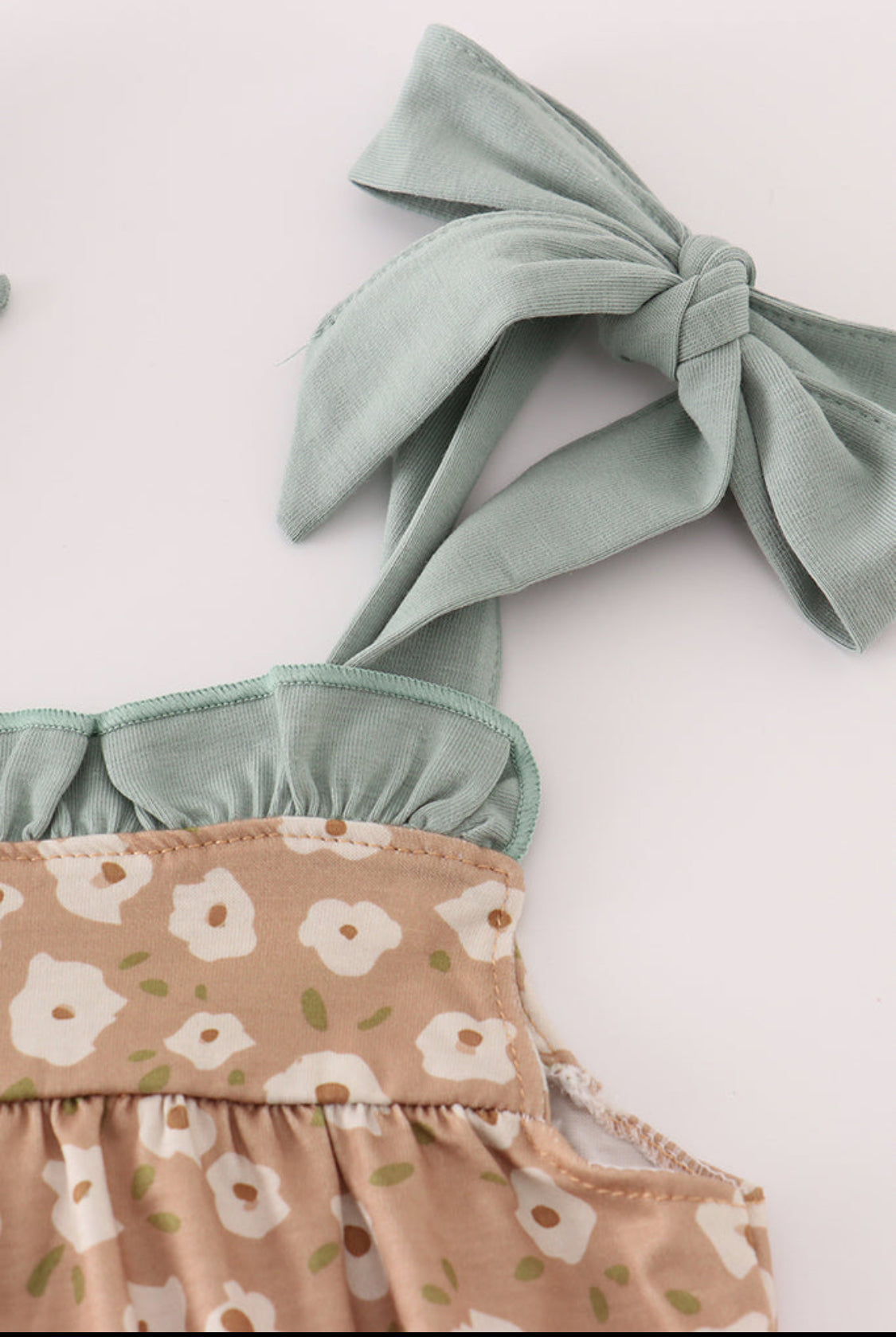 Mustard and Mint Floral Print Ruffle Girl Bubble