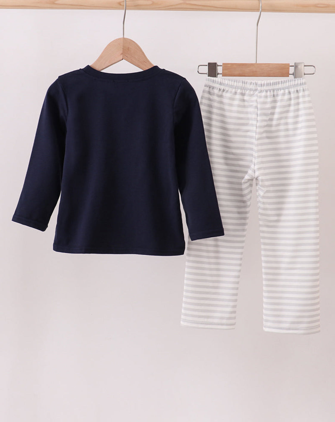 Navy Christmas Santa Claus Embroidery Stripe Boy’s Pants Set