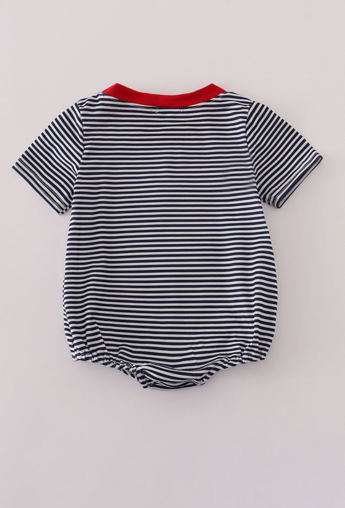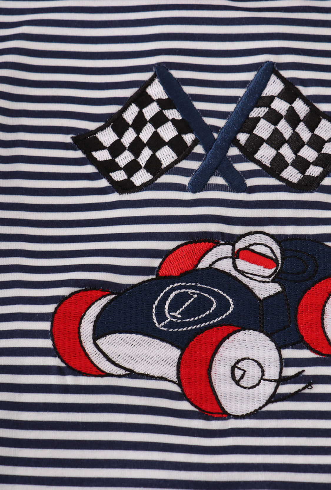 Navy Stripe Racing Car Embroidery Boy’s Bubble