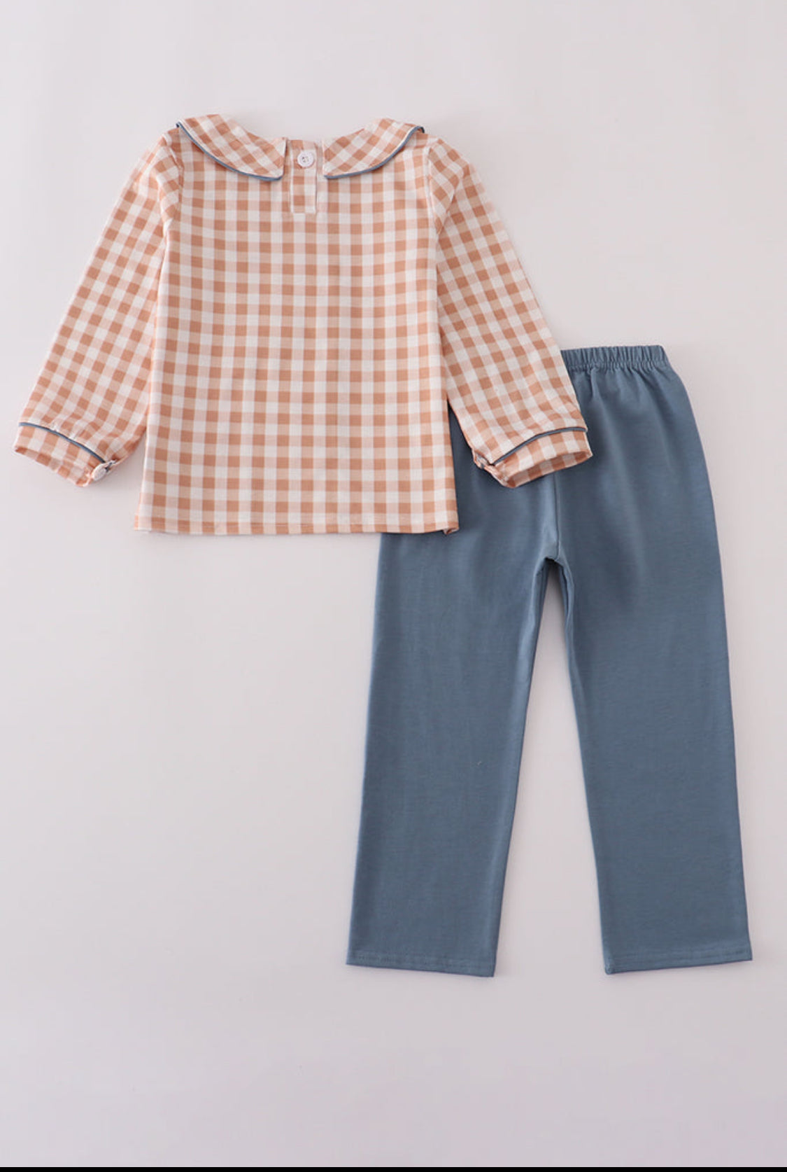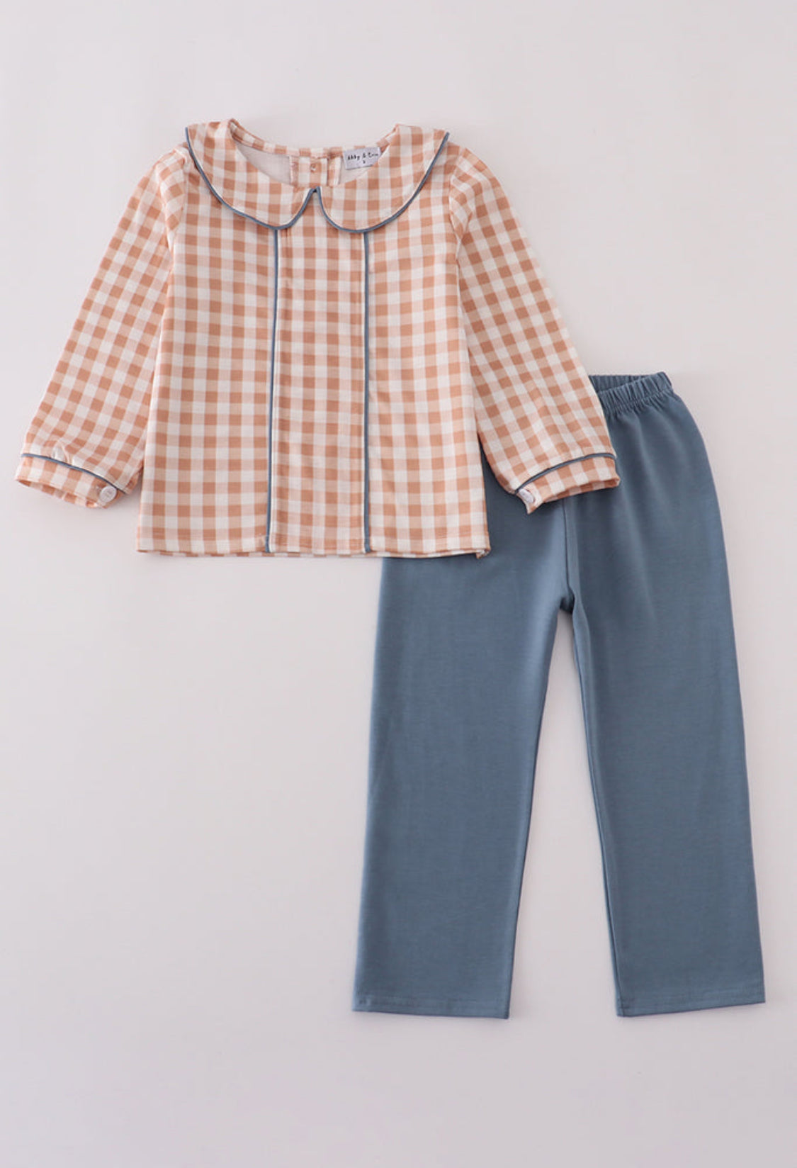 Step into sunshine with this playful orange gingham pants set! Featuring a cheerful checkered pattern, it brings a burst of fun to your wardrobe. The comfortable fit makes it perfect for casual outings or relaxed weekends, while the vibrant color adds a lively touch to your style. Embrace easygoing charm and brighten your day with this delightful set.