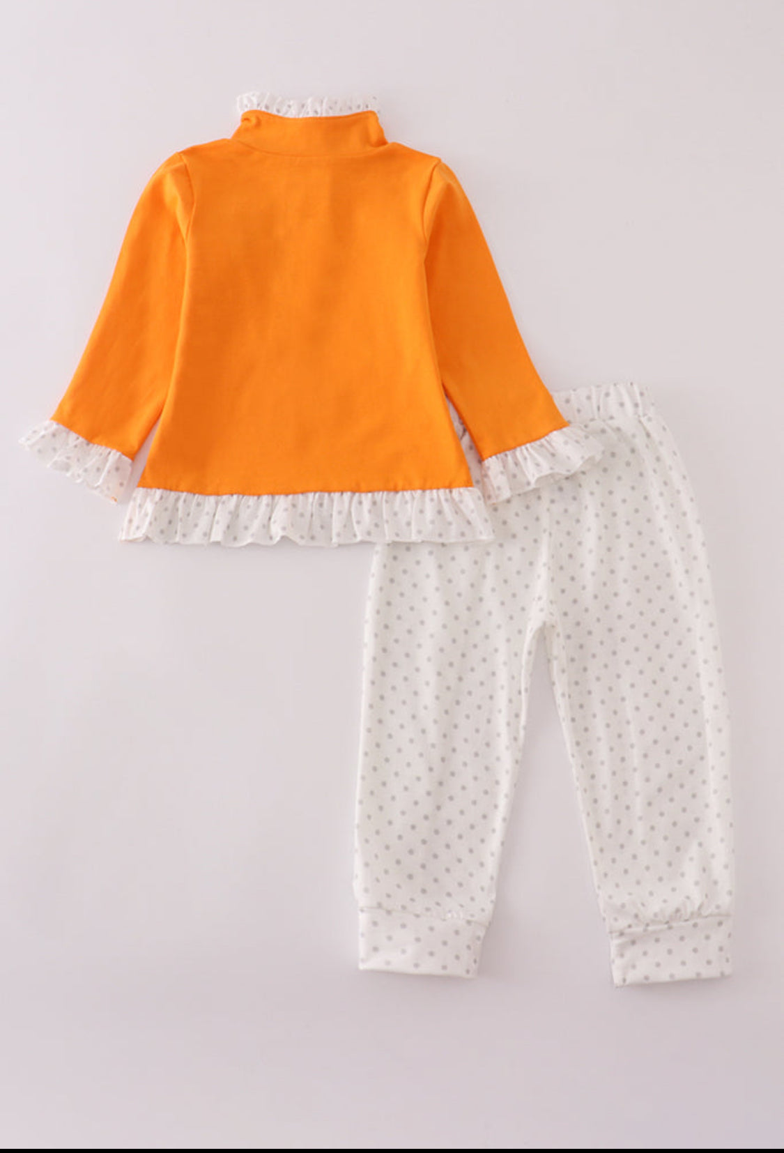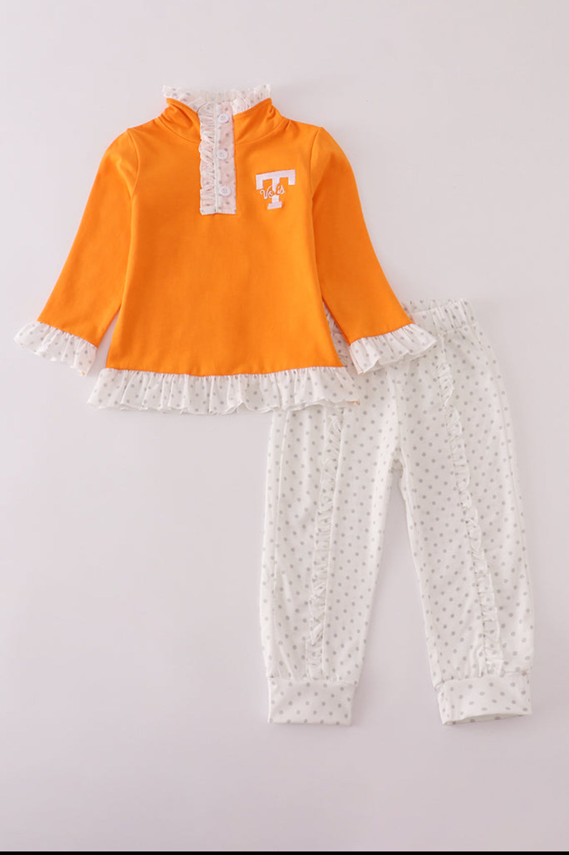 Orange Go Vols Embroidery Ruffle Girl’s Pants Set