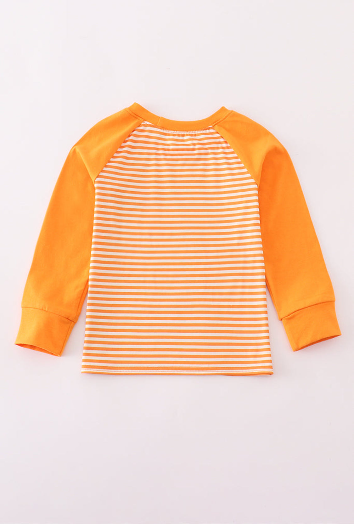 Show your team spirit with this playful Orange Tennessee Go Vols Applique Stripe Top. Featuring bold applique lettering and vibrant stripes, it's perfect for game day or casual fun.