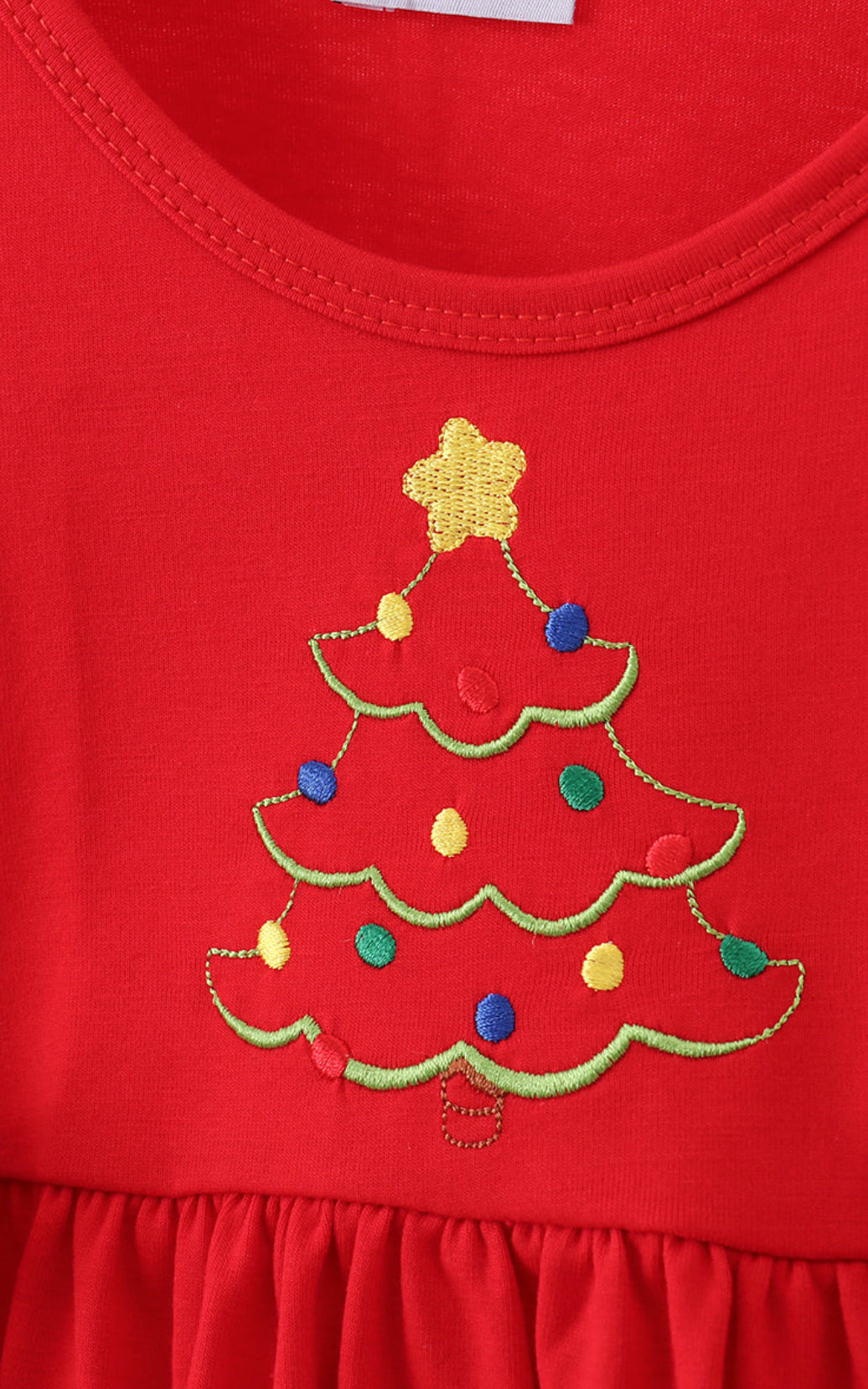 This charming red tree embroidery plaid bow pants set combines cozy comfort with a playful twist.