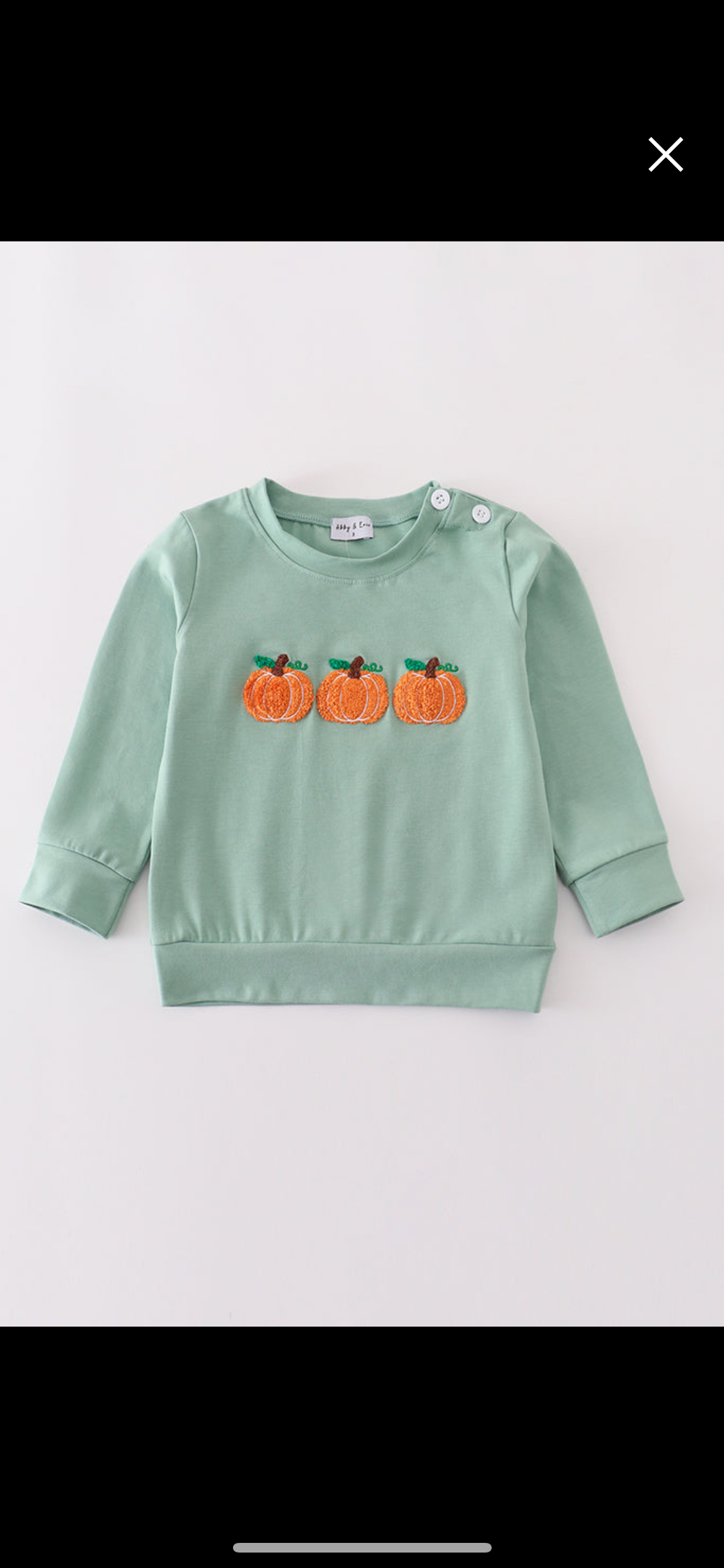 Elevate your style with the Sage Pumpkin French Knot Top—a playful twist on cozy chic. Its soft sage hue pairs perfectly with the charming pumpkin-inspired French knot details, adding texture and fun to your look.