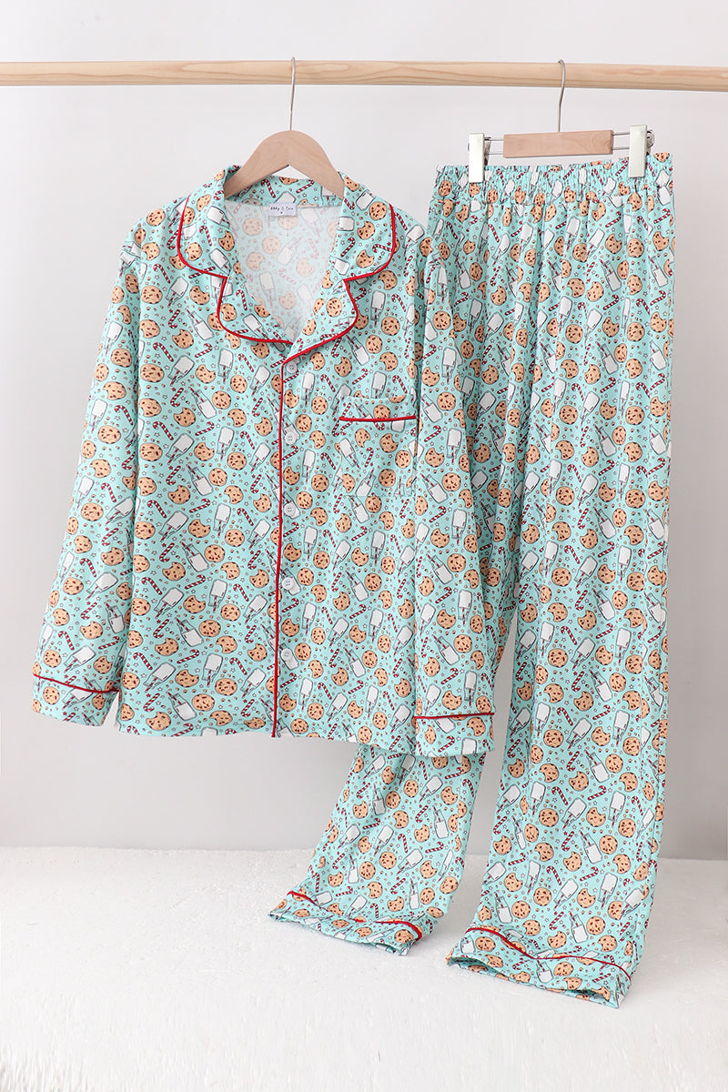 Get cozy and festive with this Santa Claus cookie print pajama set designed just for adults. Featuring playful holiday-themed prints, these pajamas bring a touch of whimsy to your seasonal relaxation. Soft and comfortable, they’re perfect for lounging by the fire or sneaking cookies from the jar—whether you’re pretending to be Santa or just enjoying some holiday cheer. Embrace the spirit of the season with style and comfort!