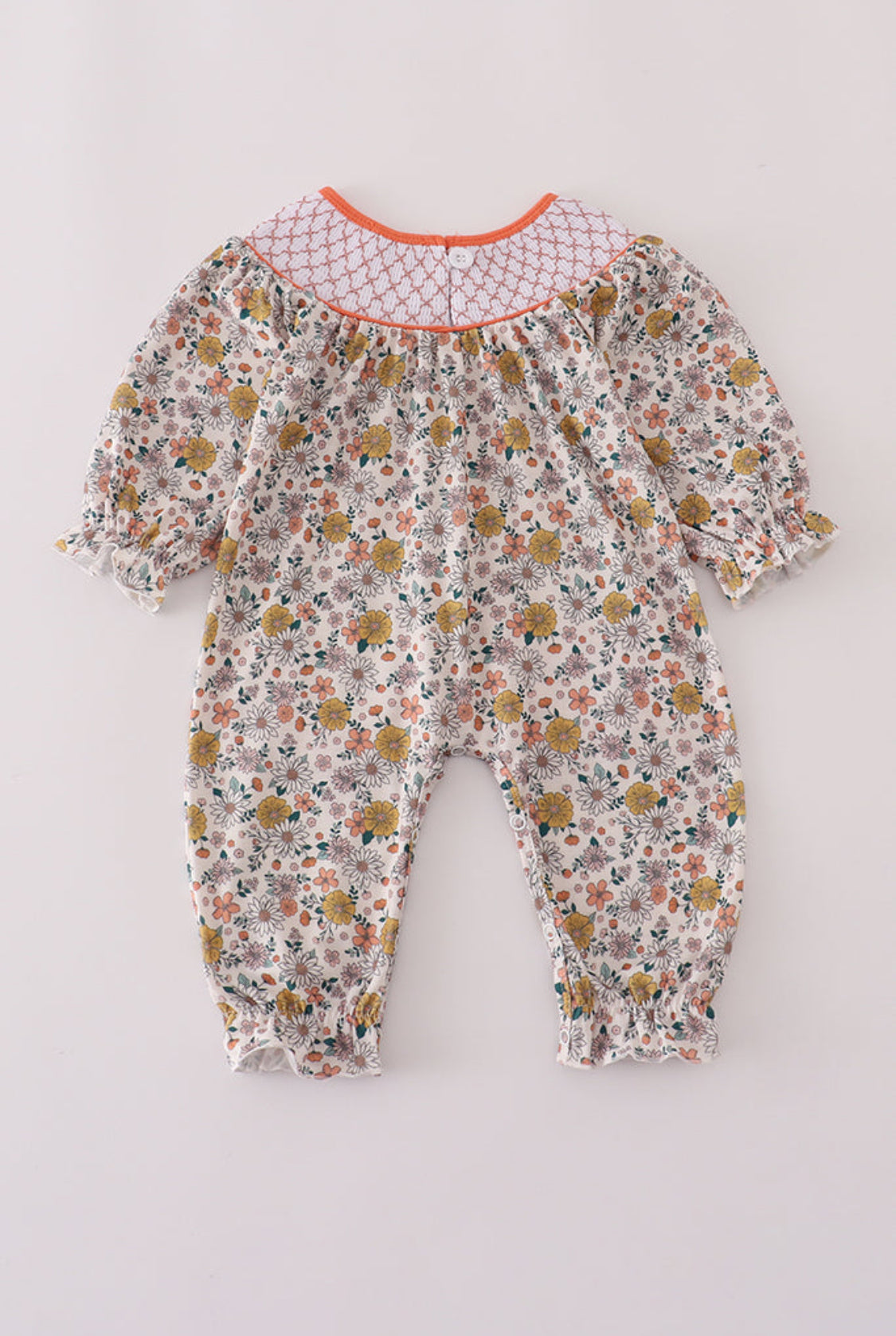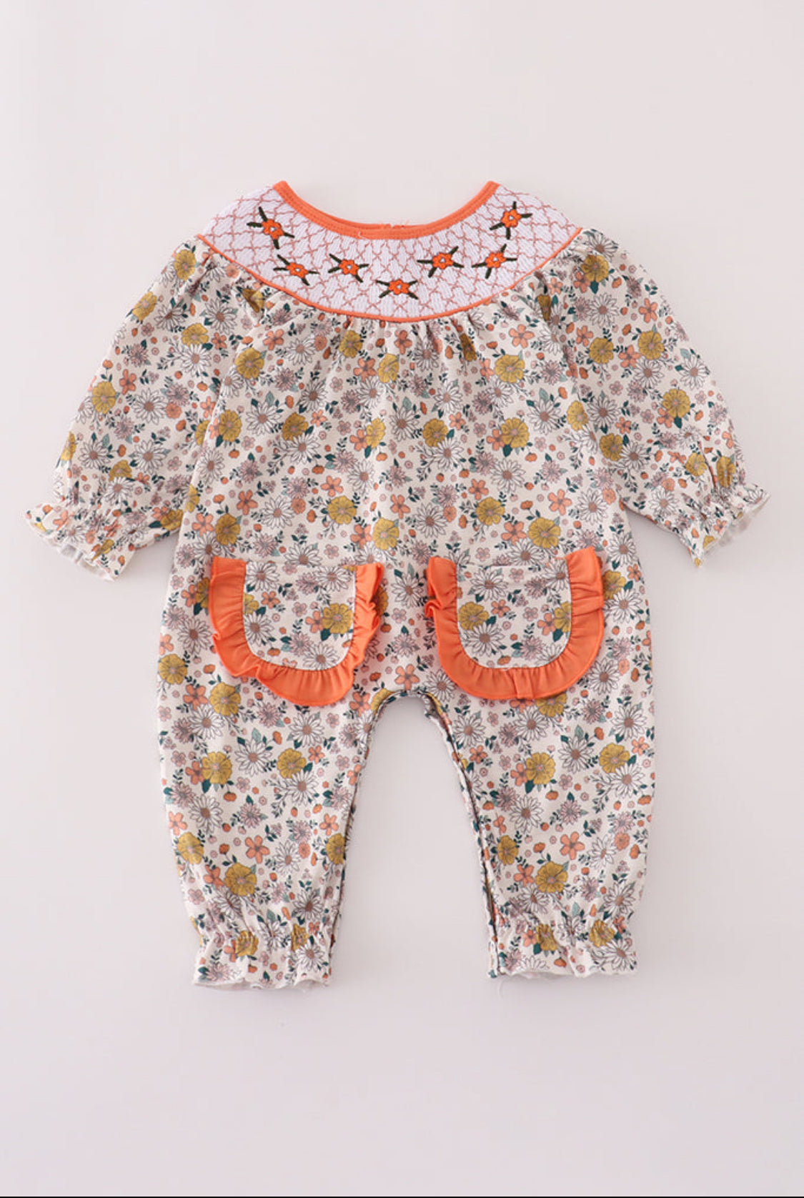 This playful romper features delicate floral embroidery and a smocked bodice for a comfy, flattering fit. Perfect for sunny days and casual outings, it adds a touch of charm and whimsy to your wardrobe. Easy to wear and effortlessly cute!