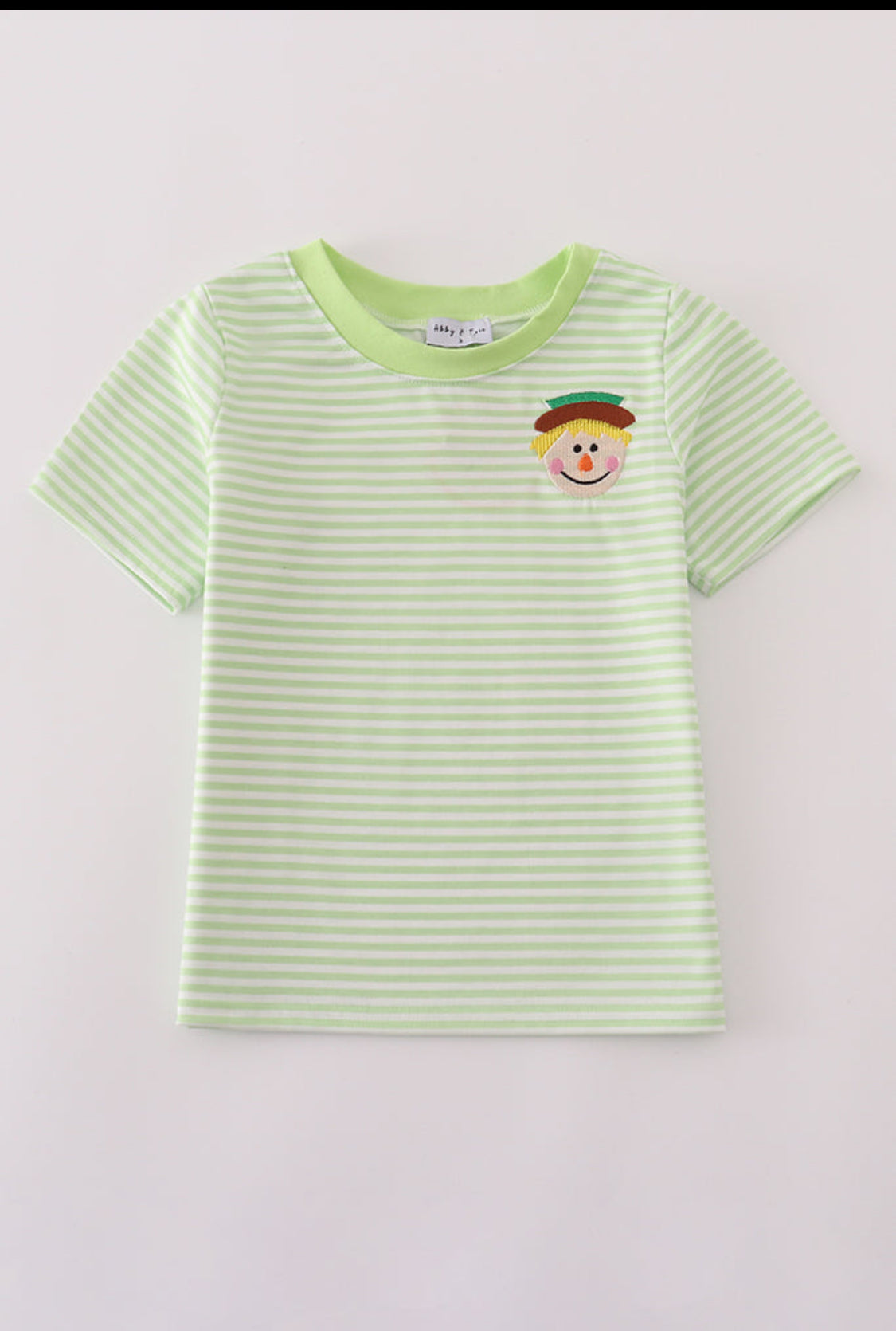 Green Scarecrow Embroidery Stripe Boy’s Top